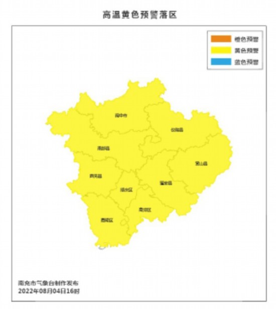 ▲ 南充市氣象臺高溫黃色預警生效中:
