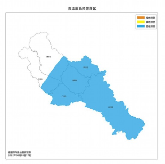 ▲ 德陽市氣象臺高溫藍色預警生效中: