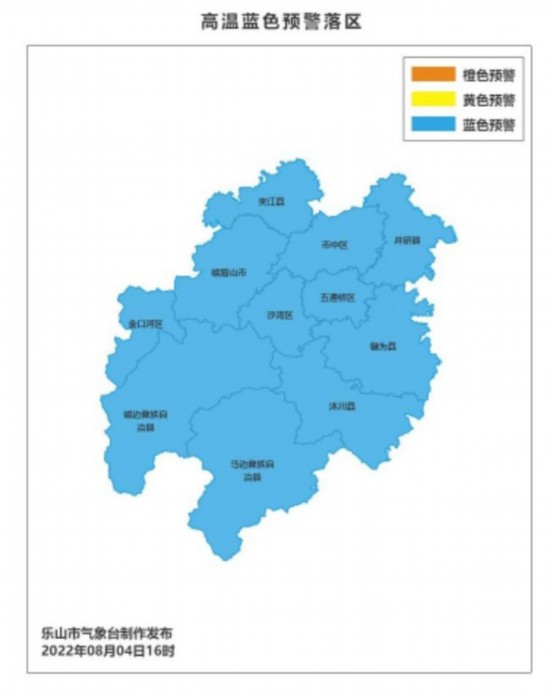 ▲ 樂山市氣象臺高溫藍色預警生效中: