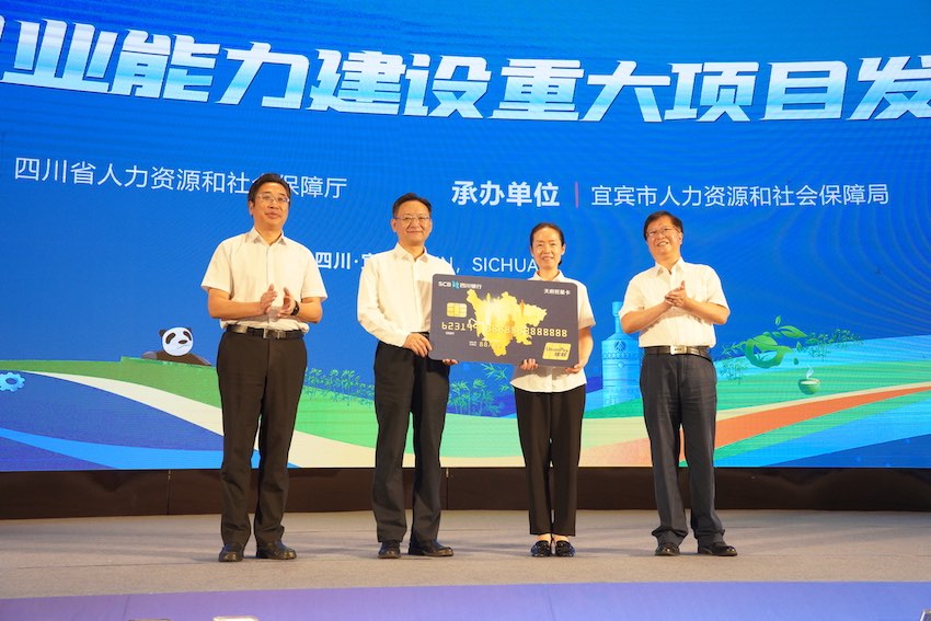 人民網成都8月25日電 (郭瑩)今日,四川省職業能力建設重大項目發布會在宜賓舉行。會議現場發放了全國首張技能人才專屬的“天府匠星卡”,發布了職業技能培訓貸和技能人才創業貸兩款創新金融產品。成都市成華區、瀘州市、綿陽市等地相關部門負責人對西部高技能人才培育總部、西部工匠城、職業能力建設創新改革先行區、現代農業產業高技能人才培育試點、高水平技術技能人才融合培育試點進行了推介。