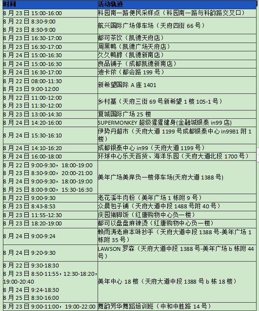 近期通報的本土病例及外地病例近期在蓉活動軌跡公布如下: