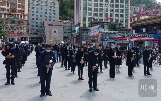 9月12日12時52分,康定市城區急促而響亮的防空警報劃破長空,震耳欲聾,汽車同時鳴笛,康定市區全城默哀3分鐘,沉痛哀悼“9·5”瀘定6.8級地震遇難同胞。