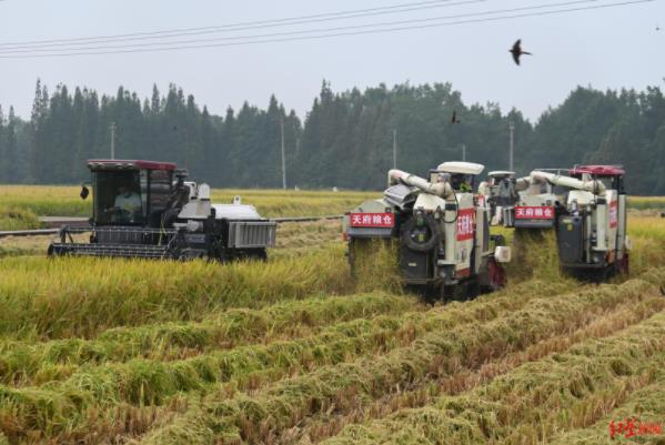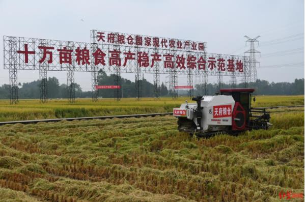 “開鐮了!”隨著四川崇州糧油儲備有限責任公司副總經理楊福明洪亮的一嗓子,天府糧倉國家現代農業產業園的秋收正式開始。