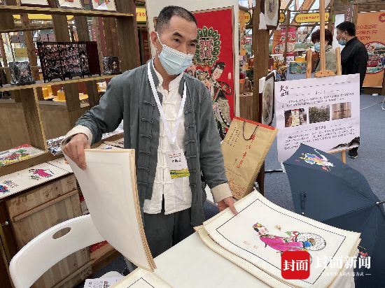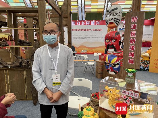 在展會上,除了年畫和繩編,還有巴山藤藝、崇州市懷遠藤編、郫都區蜀繡等民間藝術展位,還有來自各地的農副產品正在銷售。記者了解到,這次活動邀請了邀請農業農村部定點幫扶縣以及四川、重慶、湖南、甘肅等省份脫貧地區新型農業經營主體開展展示展銷活動,展場面積約1000平方米,共有80個展位、83家參展商,營銷推介優質特色農產品,同步組織多家電商及新媒體平臺現場開展電商直播活動。