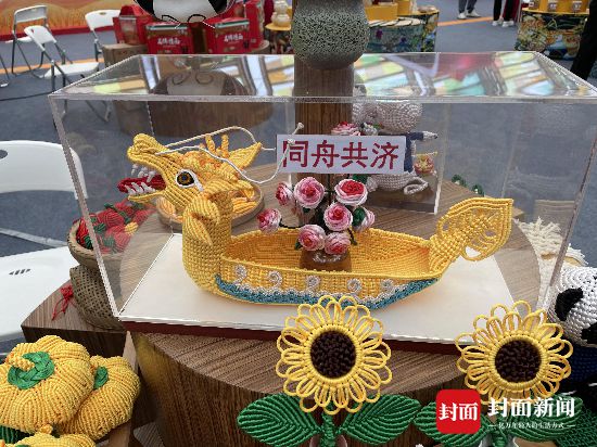 “在新津,每年端午我們有龍舟會,所以我們編織的龍舟是最形象的。賽龍舟的編織技法至少都有5種,我們都是在新津本土文化的基礎上去創作?!睏钗乃囌f。