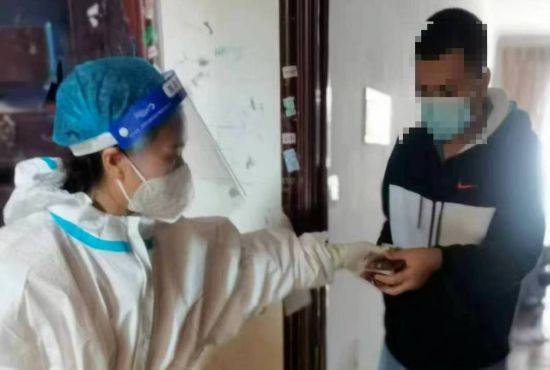 “中藥如果冷了可以用熱水或微波爐加熱,大人一次喝一袋,小孩一次喝半袋……”船山區中國銀行宿舍,“大鍋湯”分發到戶,工作人員正耐心地向住戶交待其服用方法。