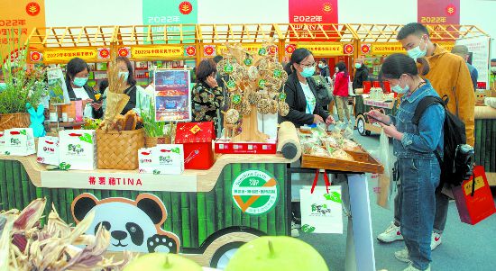 同在2號館的“金秋消費季”匯集了各種優質特色農產品,牛肉干、玫瑰茶,各種水果、蔬菜、茶葉等,吸引了許多喜歡“逛吃逛吃”的朋友。記者看到,很多展位都設置了試吃環節,游客可以挨個品嘗,覺得好吃還可以購買,現場隨處可以聽見游客的感嘆:“這種橘子真好吃,酸甜適度?!薄斑@種茉莉花茶清香撲鼻?!薄澳⒐阶龅娘灨晌兜篮芴貏e?!薄斑@種牛肉干吃起太有嚼勁了!”在小金特色農產品的展臺,還有一位主播正面對攝像頭推銷小金的玫瑰制品和小金蘋果。