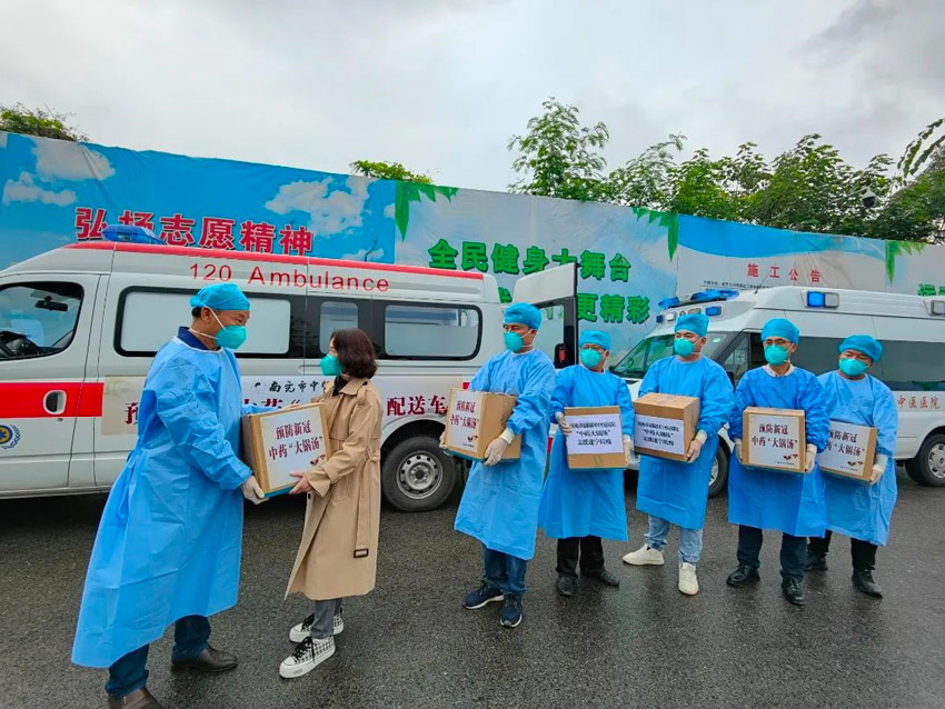 截至目前,各地支援的首批10萬袋中藥“大鍋湯”已全部到達遂寧, 發放到集中隔離點、中高風險區、居家隔離人員等高風險人群和公安干警、應急配送人員等重點人群手中。