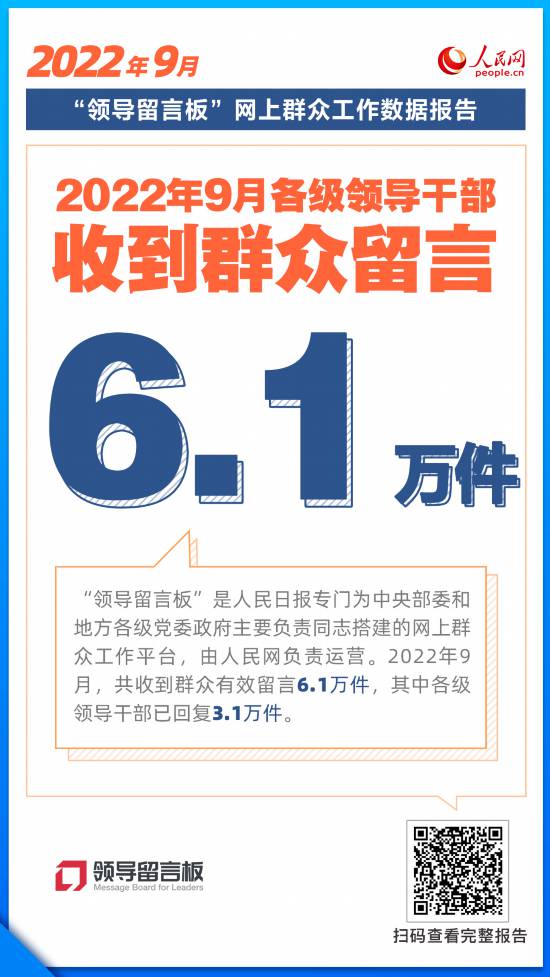9月,各級領導干部通過“領導留言板”收到群眾有效留言6.1萬件