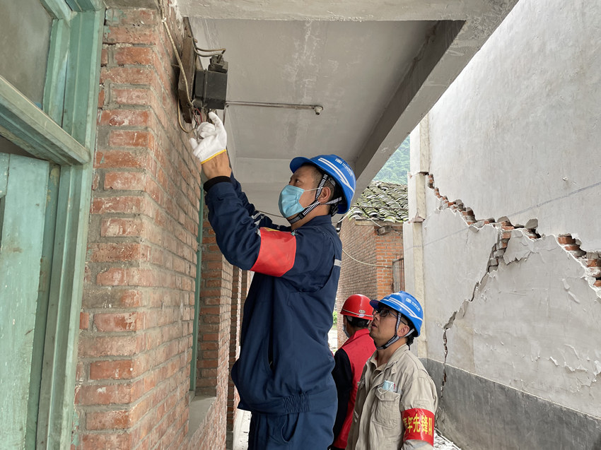 中國大唐電力搶修隊開展災區用電隱患排查。大唐甘孜公司供圖