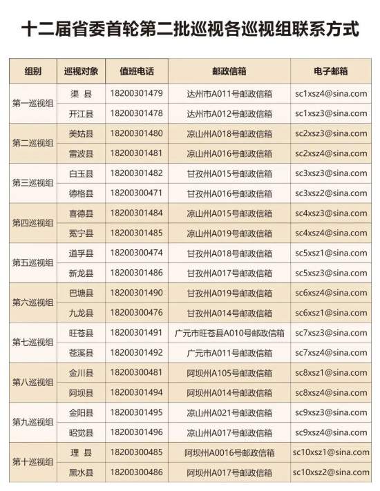 原標題:十二屆省委首輪巡視全部完成進駐 第二批巡視各巡視組聯系方式公布