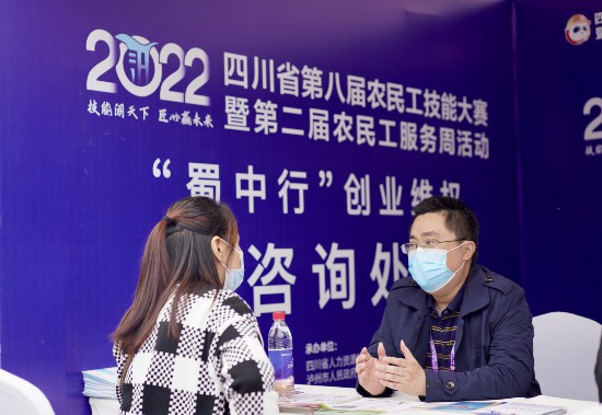 11月9日,四川省第二屆農民工服務周活動之“就業創業日”在瀘州市龍馬潭區西南商貿城如火如荼舉行。本屆農民工服務周“就業創業日”活動融合“線上+線下”的形式開展,線上活動包括“蜀創優品”直播帶貨、直播帶崗以及返鄉創業專家“云問診”等內容;線下活動包括農民工返鄉創業成果展、就業招聘會、創業沙龍、“蜀中行”創業維權服務等內容。