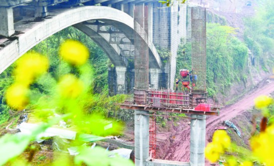 廣(安)武(勝)快速通道橋墩澆筑現場。