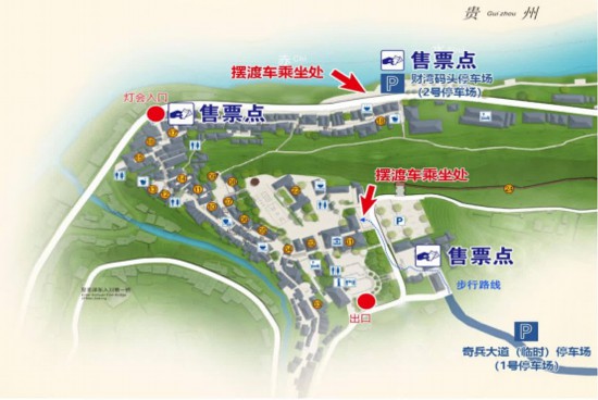 其中,燈會共設置3個現場購票點,從古宜高速太平高速出口方向來的游客到達奇兵大道(臨時)停車場(1號停車場)停車后可在四川長征干部學院太平教學點教學樓前院壩購票;貴州方向、永樂方向、二郎方向來的游客在財灣碼頭停車場(2號停車場)下車后可在停車場購票;乘坐“二郎線”公交線路的游客可在燈會入口處購票。