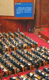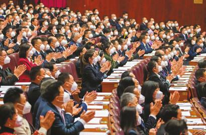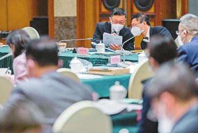 李漢成代表(左)與尹守軍代表就《關于四川省2022年預算執行情況和2023年預算草案的報告》中關心的問題進行討論。