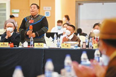 倪學兵代表(左二)建議,加大對“9·5瀘定地震”災區群眾創業就業、技能培訓的支持力度。
