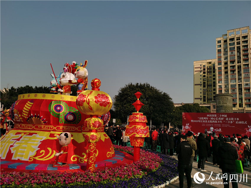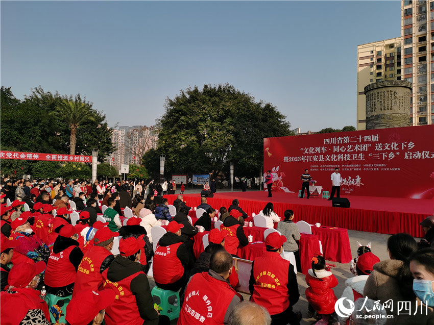 “春節期間來到基層,和當地父老鄉親一起過個年,很開心。我們帶來新春祝福,同時也感受到群眾的笑聲和掌聲。大家相互祝福、相互鼓勵、一起發展,一個很好的活動就應該這樣?!彼拇ㄈ嗣袼囆g劇院的楊涵,是這次演出活動的主持人,這次是她第二次參加文化下鄉活動。據她介紹,由于疫情原因,這個活動3年沒有開展了。今年重新開展這個活動,為基層群眾演出,她們都很興奮?!懊髂暧羞@個活動的話,我還要參加?!睏詈瓐远ǖ乇硎?,她是四川人民藝術劇院的職工,要努力為基層人民群眾提供好的文化藝術作品。