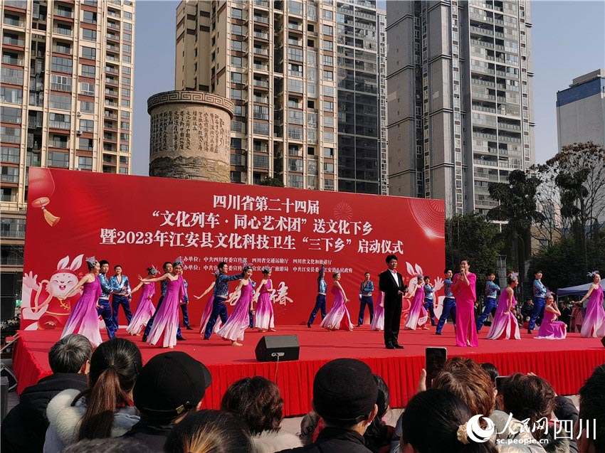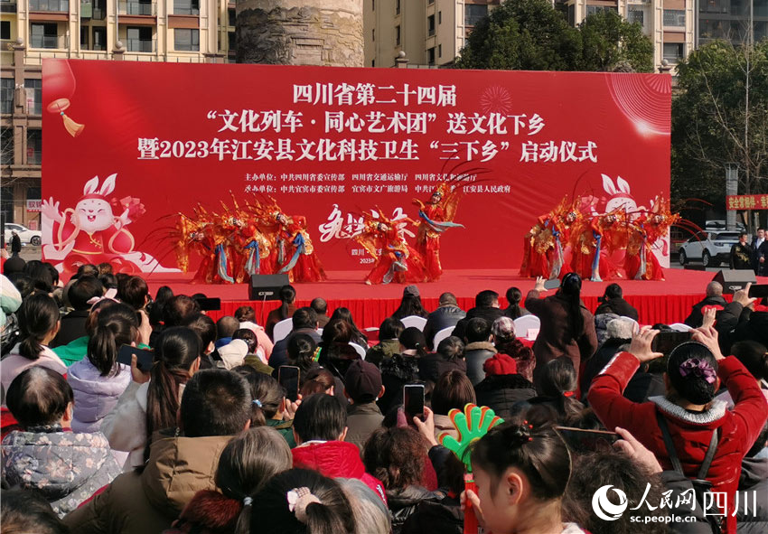 萬里長江第一城是宜賓,萬里長江第一縣是江安。1月30日,農歷正月初九,四川省第二十四屆文化列車·同心藝術團送文化下鄉活動來到了這座美麗的江畔小城,為當地群眾帶去了藝術的魅力,增添了節日的歡樂。同時,這個以“文化進萬家、新春走基層”為主題的文化惠民活動,將在接下來的幾天里在宜賓市和瀘州市的各個區縣巡回開展。