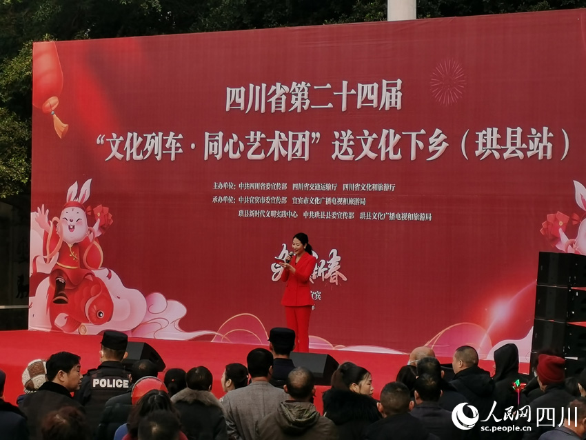 山水宜賓,川南回春。2月1日,四川省第二十四屆文化列車·同心藝術團送文化下鄉活動繼續進行。當天上午,演出人員乘車來到珙縣巡場鎮雙三公園,向當地群眾祝福春節。
