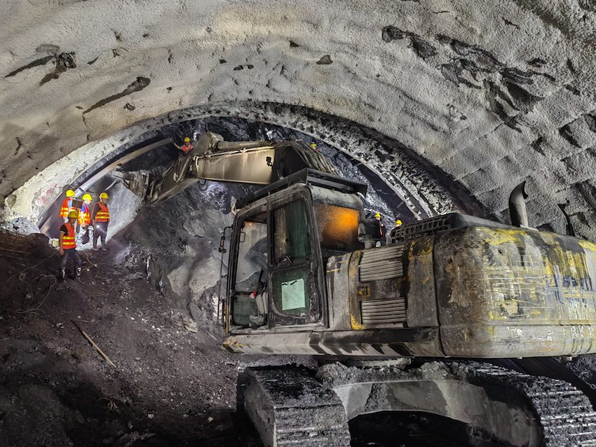 成蘭鐵路德勝隧道施工人員安裝支護。成蘭公司供圖