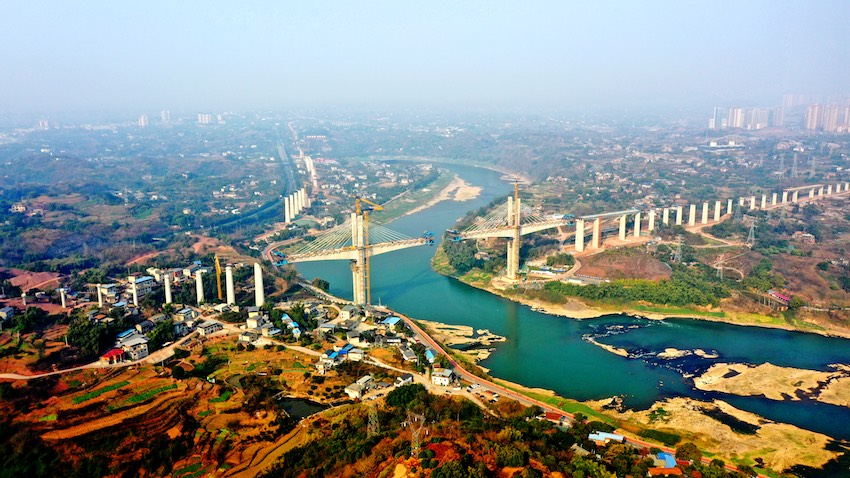 渝昆高鐵瀘州沱江特大橋施工現場。西昆公司供圖
