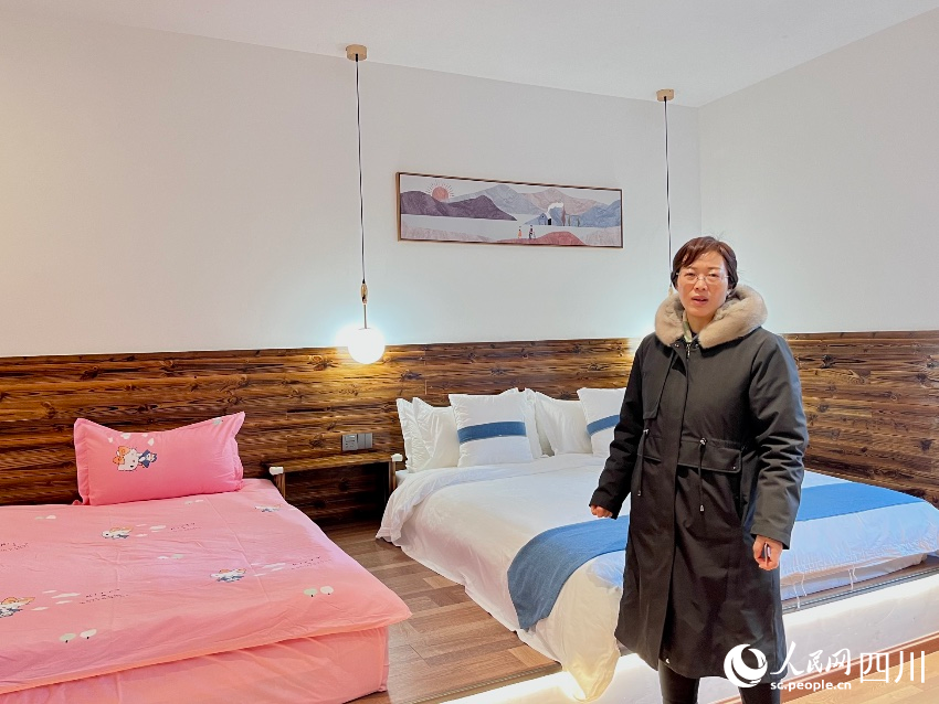 民宿“時間之外”的老板陳友鳳介紹春節房間的準備情況。人民網 朱虹攝