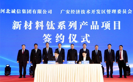 河北誠信集團有限公司成立于1990年,是國家高新技術企業、國家技術創新示范企業、工信部第三批“綠色工廠”。旗下廣安誠信化工有限責任公司在我市深耕細作15年,成為我市第一家產值超50億元、稅收超5億元的民營企業,成功進入全省民營企業100強。今天簽約的新材料鈦系列產品項目,秉持綠色化、循環化、低碳化發展理念,可實現現有產業鏈副產物和中間產物綜合利用,系列產品將廣泛應用于航空航天、生物醫療、海洋工程等領域。