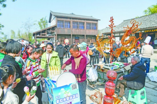 油菜花節帶動游客在花橋鎮農耕博物館旅游消費。