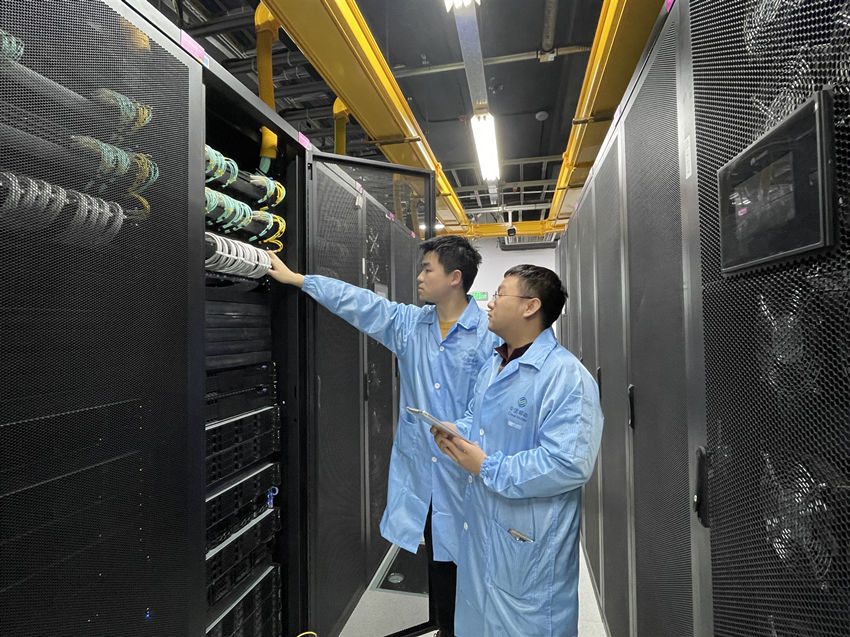 中國移動四川南區樞紐中心工作人員調試設備,為“東數西算”積攢“能量”。中國移動四川公司供圖