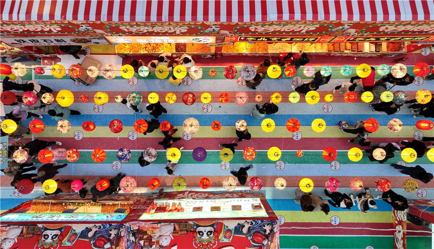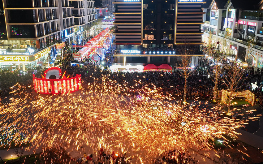 3月26日晚上,在四川省眉山市仁壽縣棲西里商業街區,一個個夜市攤位“串”起了充滿煙火氣的“夜經濟”。市民們在此游覽消費、休閑娛樂,觀看非遺“打鐵花”、欣賞文藝表演……在熱鬧的氛圍中,人們樂享一片繁華的夜空。