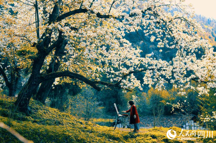 來自重慶的畫家趙中琳說:“東梨村給我的感受,絕對就是那種美的時光感。百年梨樹給人遒勁、滄桑之感,非常吸引畫家?!?/p>