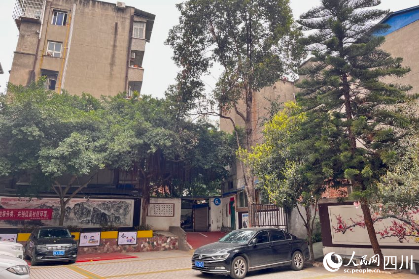 “社區組織黨員帶頭清掃院落,居民們主動加入,老住戶、新居民都是一家人?!绷谓鹚钢^院墻上的山水畫說,“這都是四川美術協會的書畫家們免費給畫的。院子雖小,文化氛圍不能少?!?/p>