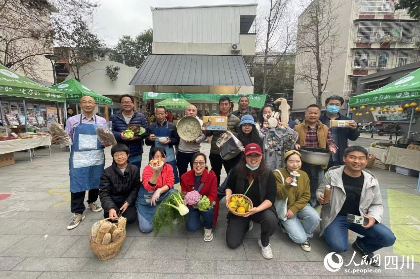 每月中旬,成都武侯區玉林東路社區的小廣場上都會舉行生活市集。來自成都周邊的十幾戶生態種植農戶會帶著自家種植的當季新鮮蔬果、五谷雜糧,以及健康無添加的手工食物、手工生活用品來擺攤。