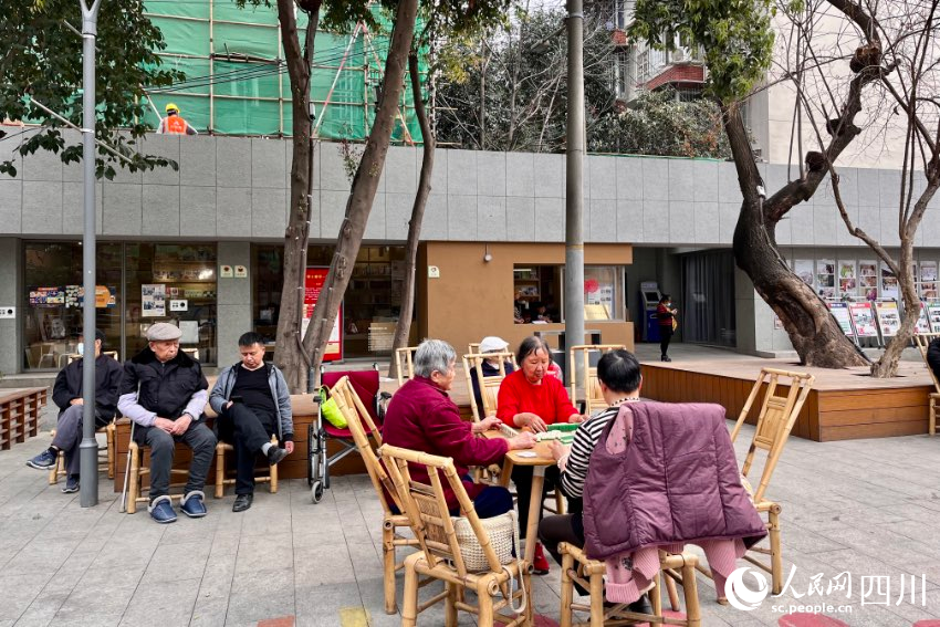 居民在玉林東路社區小廣場打麻將、休息。人民網 朱虹攝