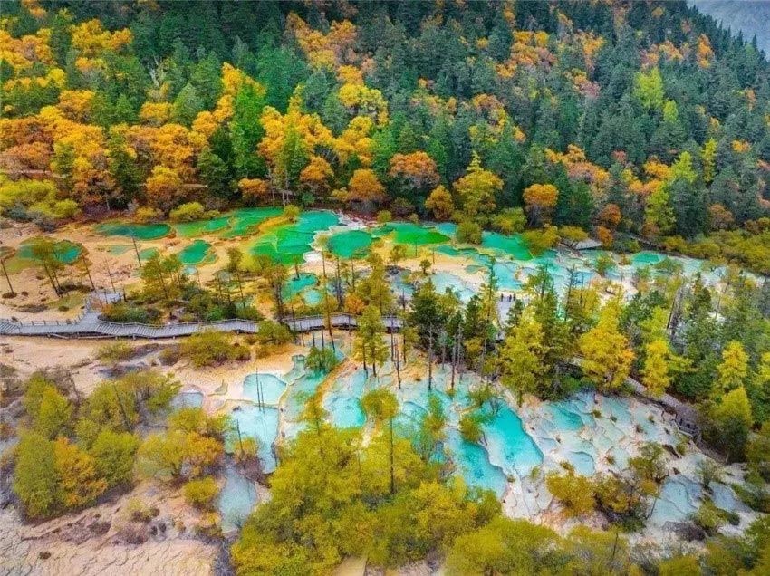 正是因為有四季的輪回,黃龍才有了自己豐水期的燦爛奪目,枯水期的靜謐蟄伏。冬春與夏秋的黃龍各含韻味,有著不同的美麗之處。