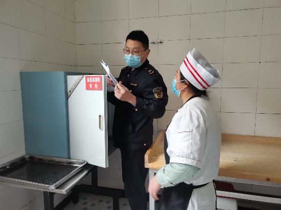 圖為胡用軍正在學校食堂開展食品安全檢查(受訪者供圖)