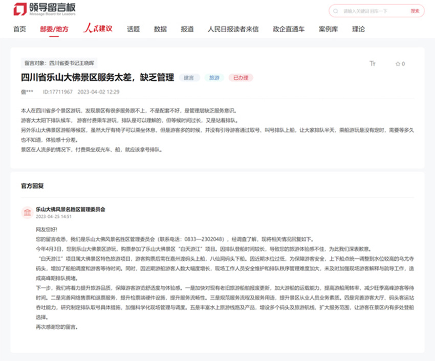 辦得好 | 網友一條留言引出樂山大佛景區五條改善措施