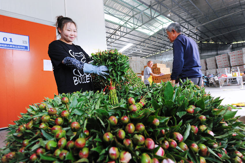 良好的銷路不僅讓芍藥鮮切花產業發展勢頭強勁,也讓當地的村民們受益。來自附近村社的一百余名村民常年在這里務工,每年發放的勞務費用就達200萬元。