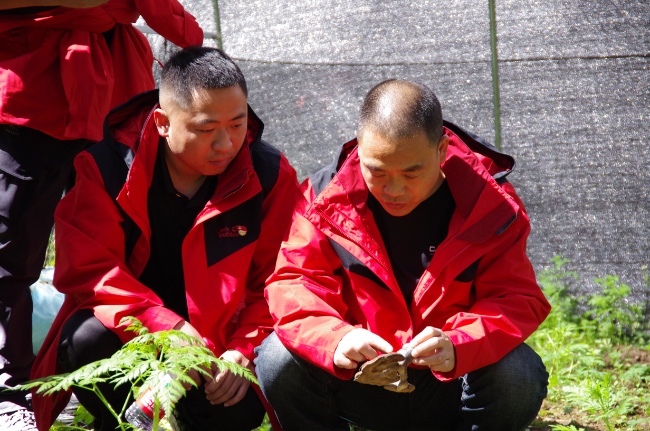 錦江區第六批對口支援工作隊副領隊、掛任爐霍縣委辦副主任孫紅松(右)考察爐霍縣雅德鄉交納村農業種植項目。錦江區第六批對口支援工作隊供圖