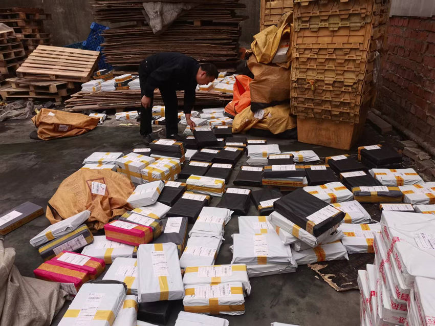 現場查獲的假煙包裹。成都市煙草專賣局供圖