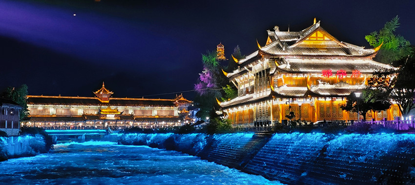 藍色的熒光撒入岷江,如夢似幻。鄧青攝