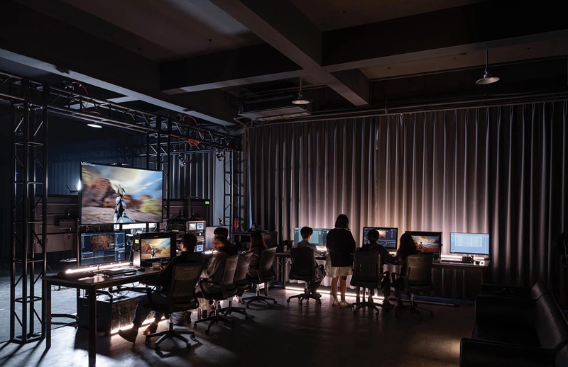 四川影視文創城數字虛擬制作棚內,學生正在嘗試影片制作。川影供圖