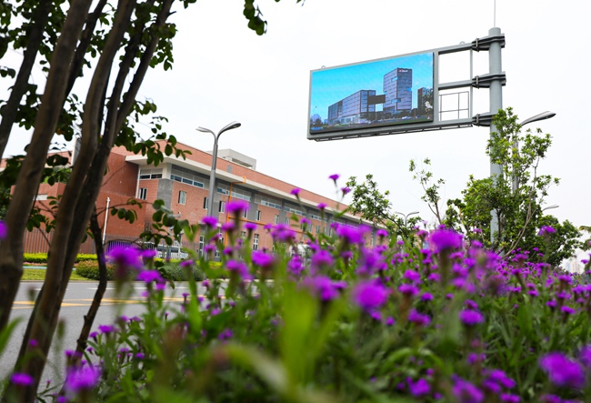 低頭看,是花繁葉茂;抬眼望,智慧綜合桿“護航”大運通道,實現人、車、路、環境的全息監測。