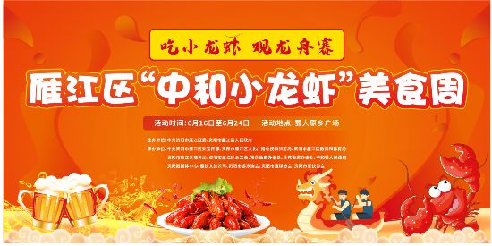 相約美麗雁江,共赴雁江區“中和小龍蝦”美食盛宴。2023年雁江區“中和小龍蝦”美食周活動將于6月16日至6月24日,在城東新區蜀人原鄉廣場(碧滿路)舉行?;鹄眲疟男↓埼r美食,奮楫逐浪的龍舟賽,動感搖滾的音樂表演,對抗激烈的籃球“村BA”,溫馨有趣的親子游樂……現場超多精彩內容迎接八方賓客。