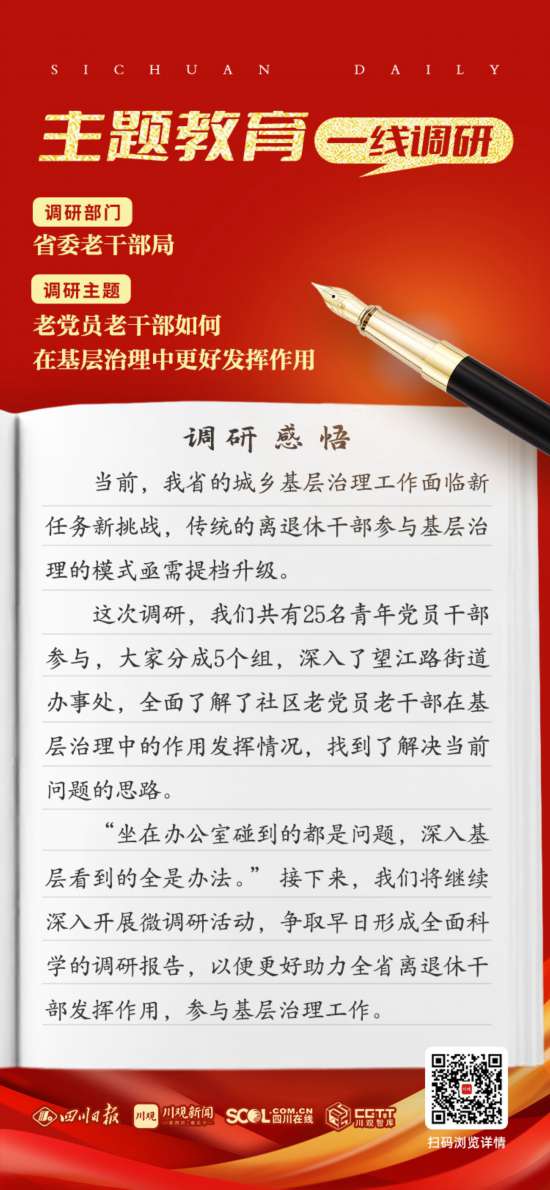 當前,四川省的城鄉基層治理工作面臨新任務新挑戰,傳統的離退休干部參與基層治理的模式亟需提檔升級。