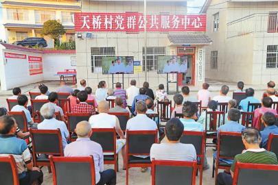 7月29日晚,在翠云廊所在的廣元市劍閣縣劍門關鎮天橋村黨群公共服務中心,當地黨員干部和群眾集中收看習近平總書記來川視察的新聞報道。 劉仁 唐彪 攝(C視覺)
