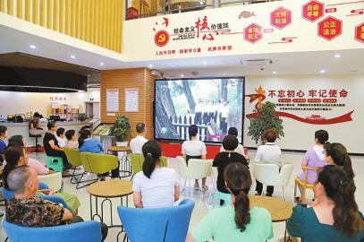7月29日晚,瀘州市合江縣符陽街道桂圓林社區干部群眾收看習近平總書記來川視察的新聞報道。盧海軍 攝(C視覺)