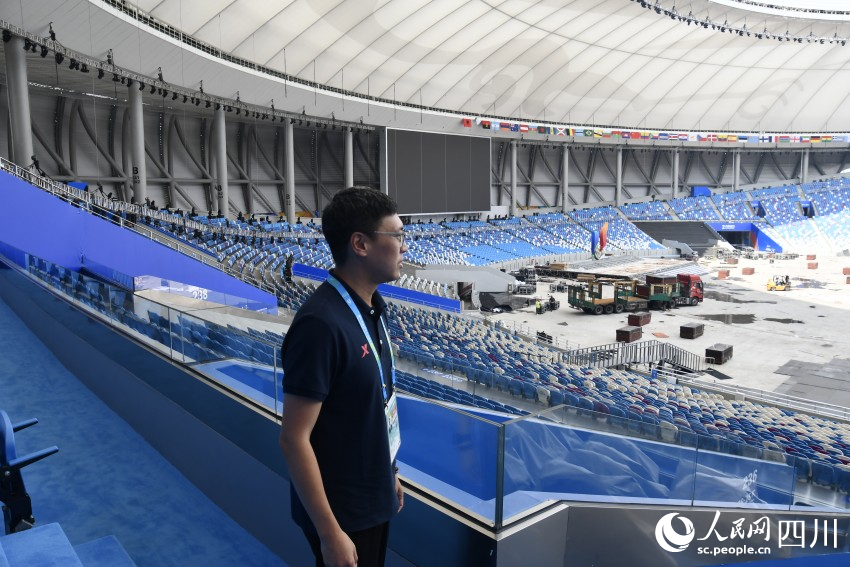 尹凌川是華潤置地建設事業部代建成渝工程管理副總監,全過程參與東安湖體育公園“一場三館”的建設,他還有個身份——成都大運會賽事保障開幕式工程館長。