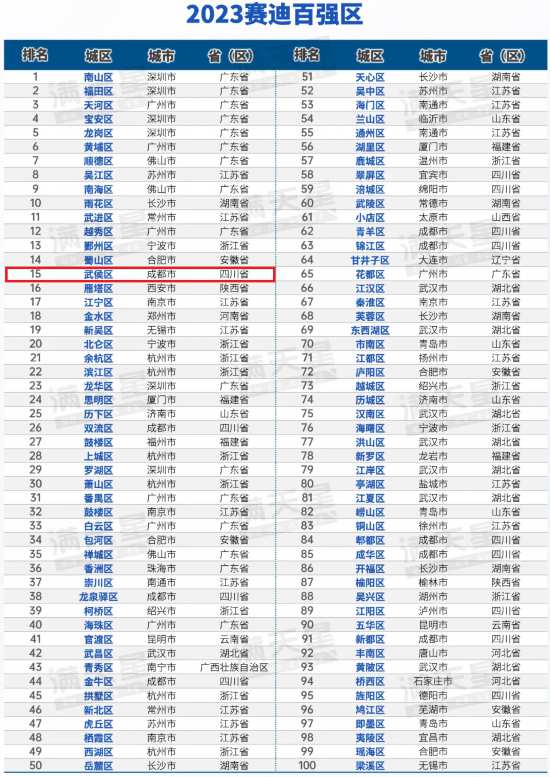 西部第一!成都市武侯區上榜2023年中國城區經濟高質量發展百強區