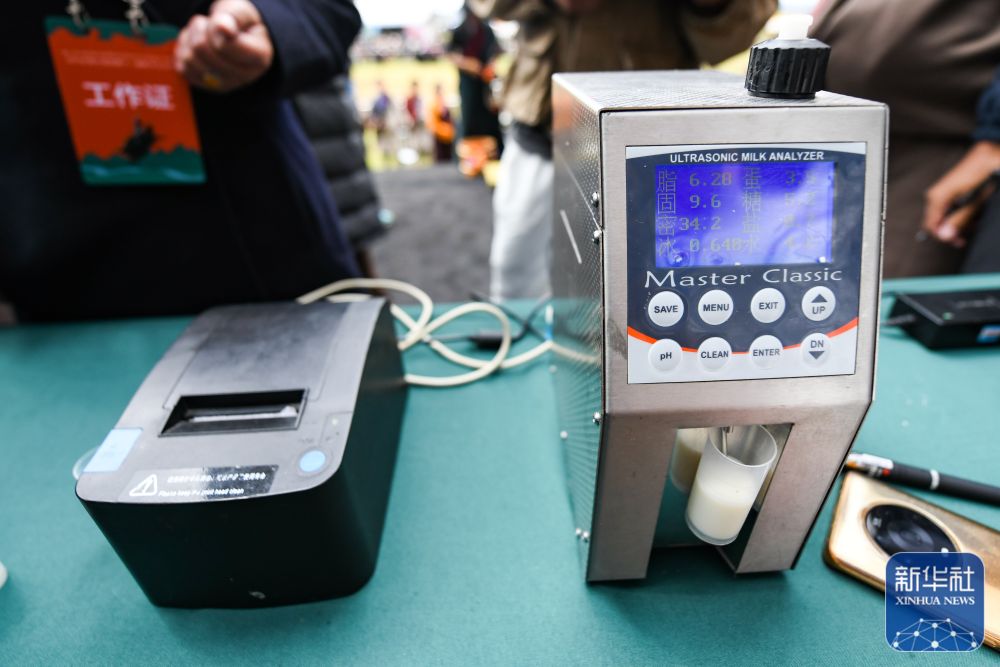 8月25日,在四川省阿壩藏族羌族自治州紅原縣雅克音樂牧場,現場工作人員在化驗牦牛奶的各種營養成分含量。